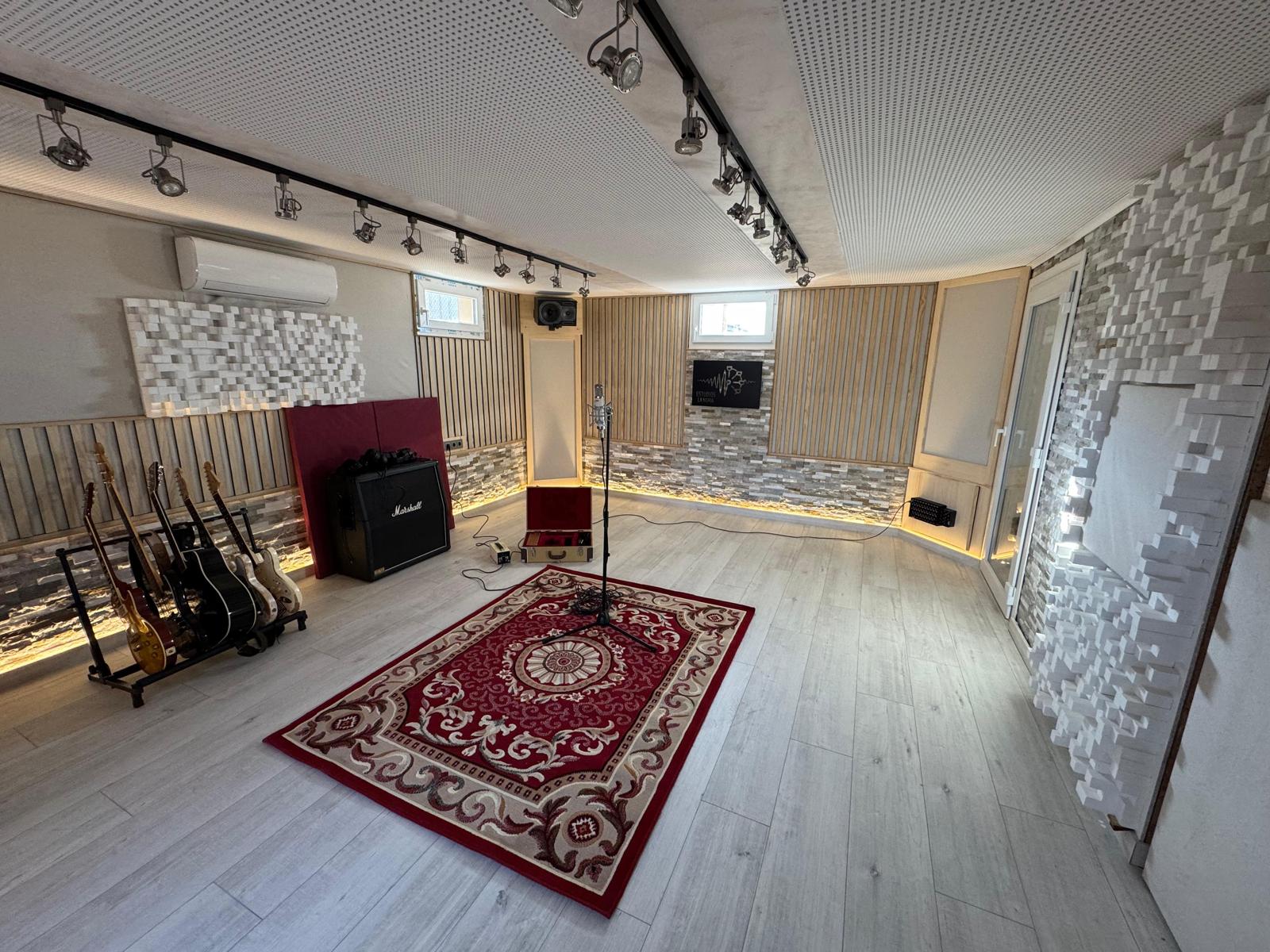 El estudio está acondicionado acústicamente para garantizar grabaciones profesionales de alta calidad, pero además se diseñó buscando una decoración moderna, espaciosa, elegante y con una gran cantidad de luz natural, para garantizar el confort del artista en las largas sesiones de grabación aportando un ambiente agradable e inspirador en lo acústico, en lo visual y en la práctica.